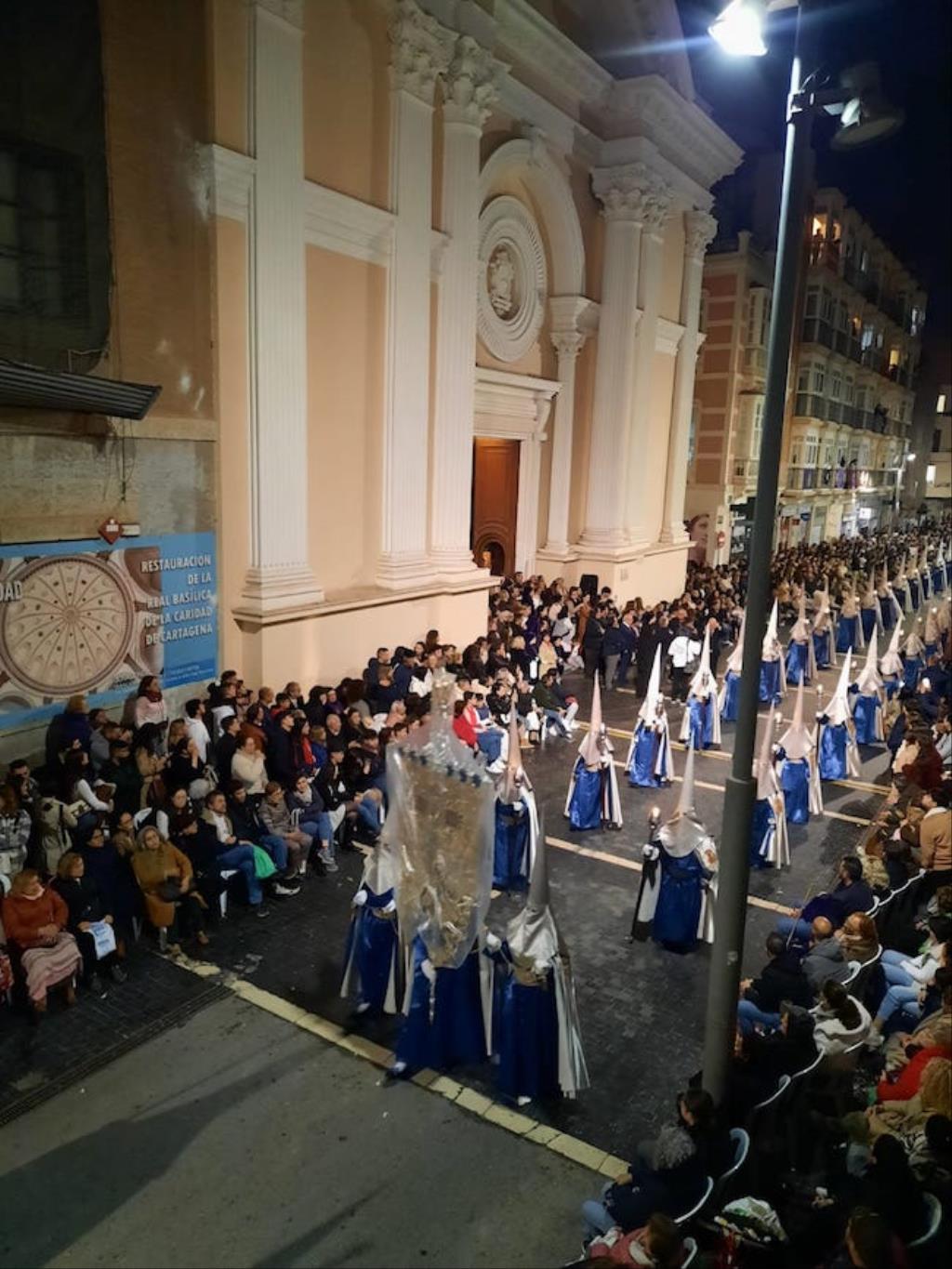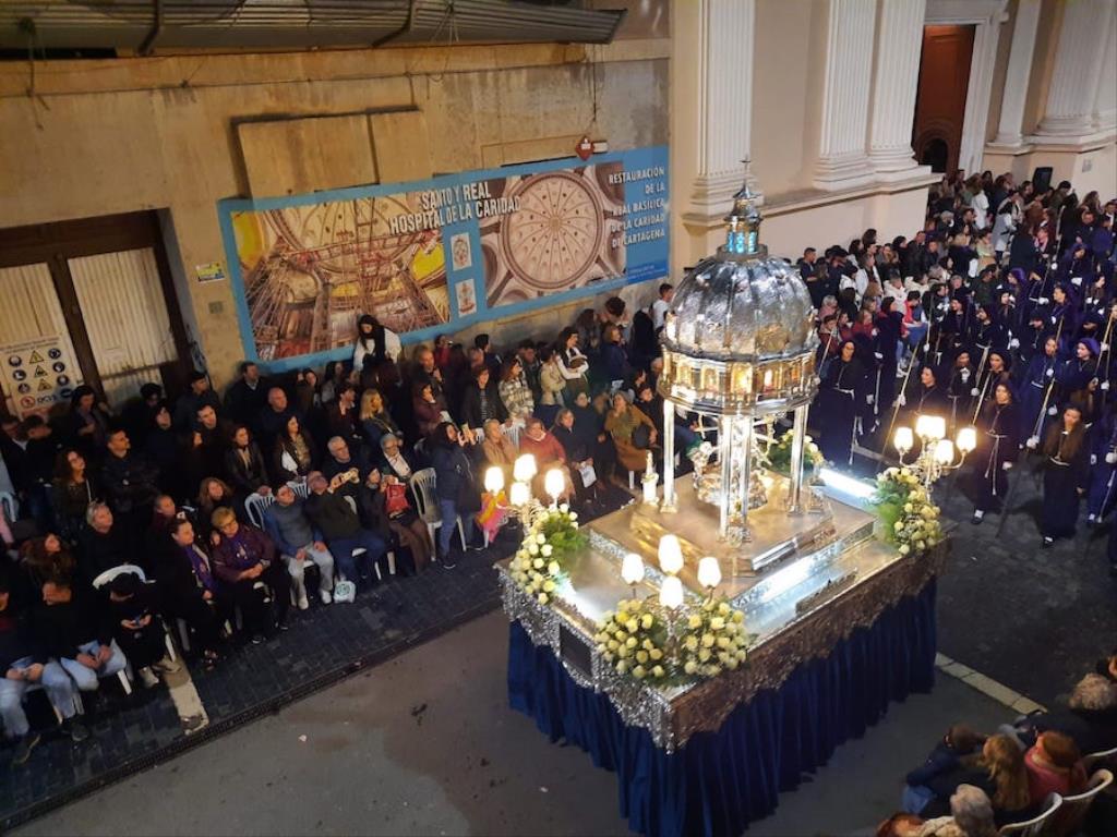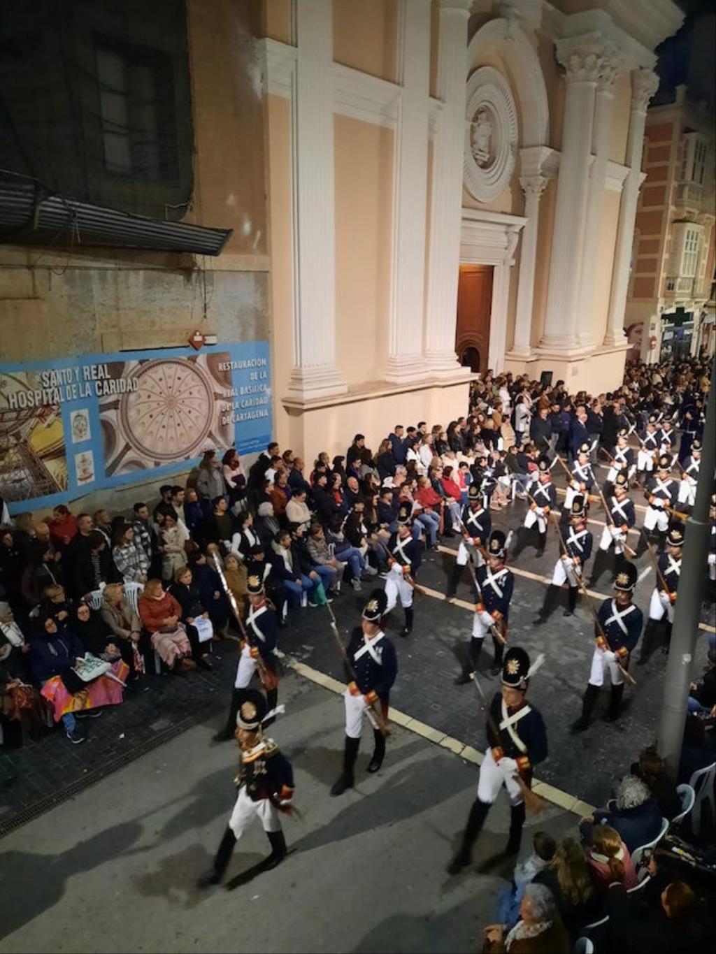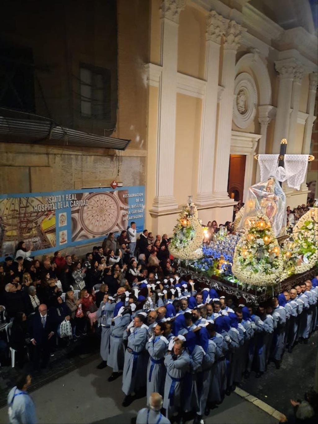 Juan Manuel Ayaso ofrece a los lectores de Cartagena de Hoy escenas del paso ante la Real Basílica Menor de la Virgen de la Caridad de los tronos de La Piedad y de San Juan, respectivamente, el Lunes y el Martes Santo.