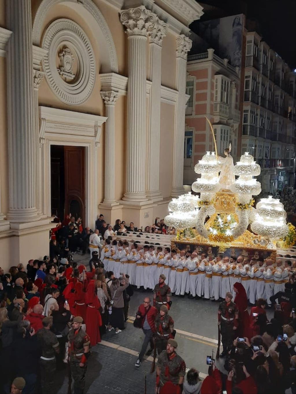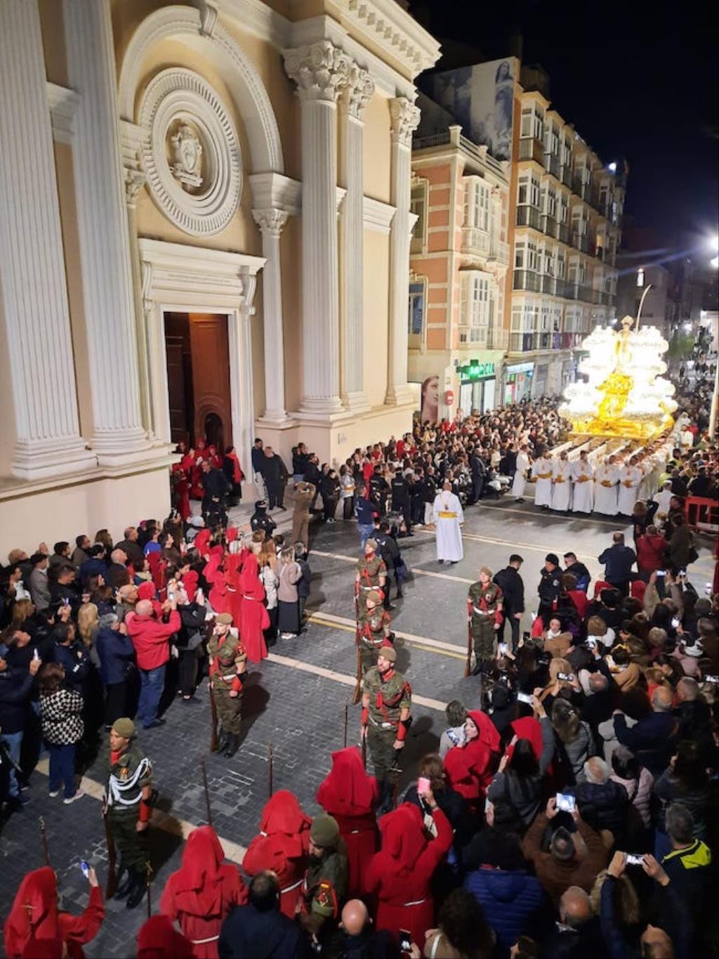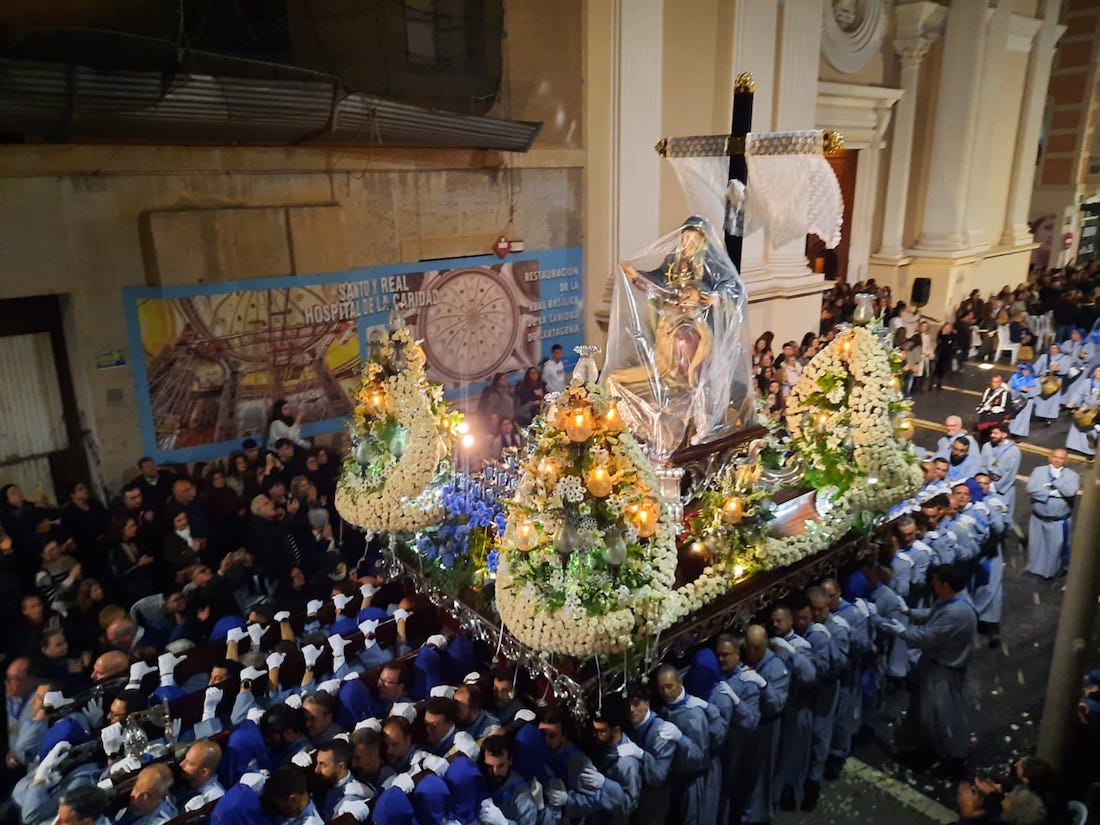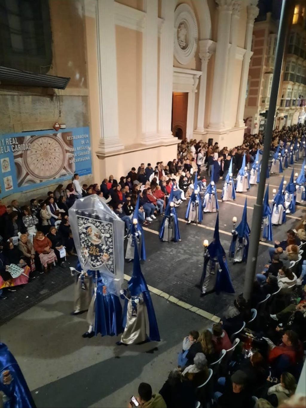 Juan Manuel Ayaso ofrece a los lectores de Cartagena de Hoy escenas del paso ante la Real Basílica Menor de la Virgen de la Caridad de los tronos de La Piedad y de San Juan, respectivamente, el Lunes y el Martes Santo.