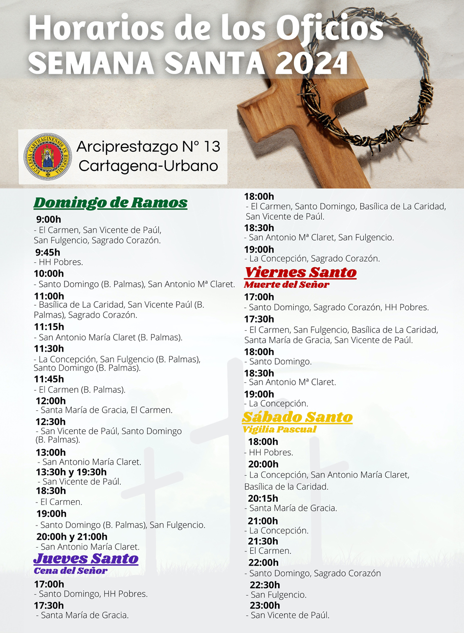 Los dos días con más actividad procesionista en el municipio de Cartagena. En la ciudad se despiden hoy los californios con 'el Silencio' y en la medianoche comienza el día marrajo que traerá 'el Encuentro' y el entierro de Cristo. Otras actividades de las cofradías son el 'Cabildo de las yemas' y el acto de desagravio de los romanos californios al Ecce Homo. También hay procesiones estos dos días en Cabo de Palos, El Albujón, Pozo Estrecho, La puebla, El Algar, La Aljorra, Los Belones y La Palma (foto adjunta), además del vía crucis de la parroquia urbana de San Fulgencio. También ofrecemos información sobre las previsiones climáticas.