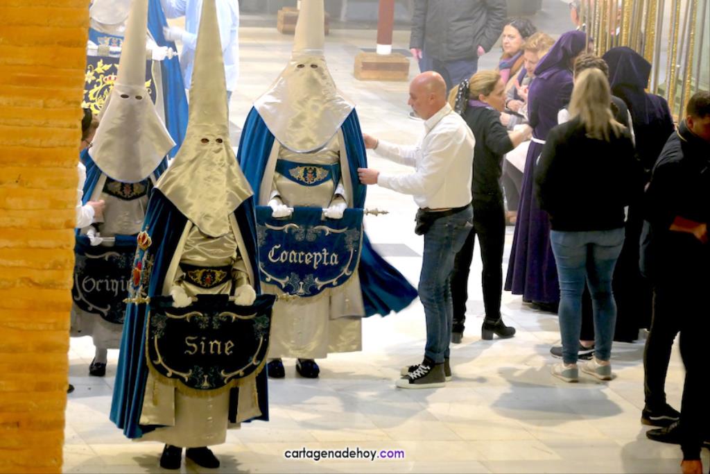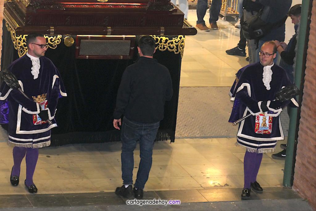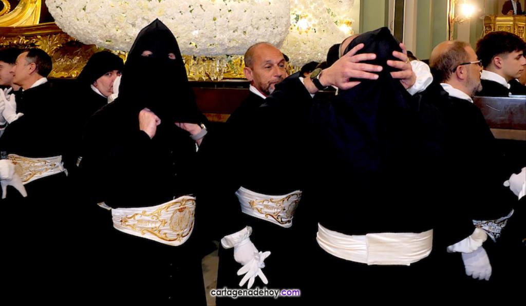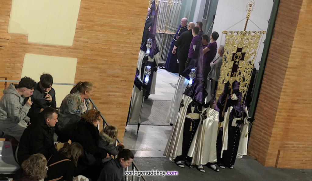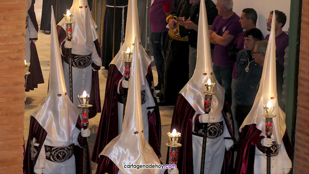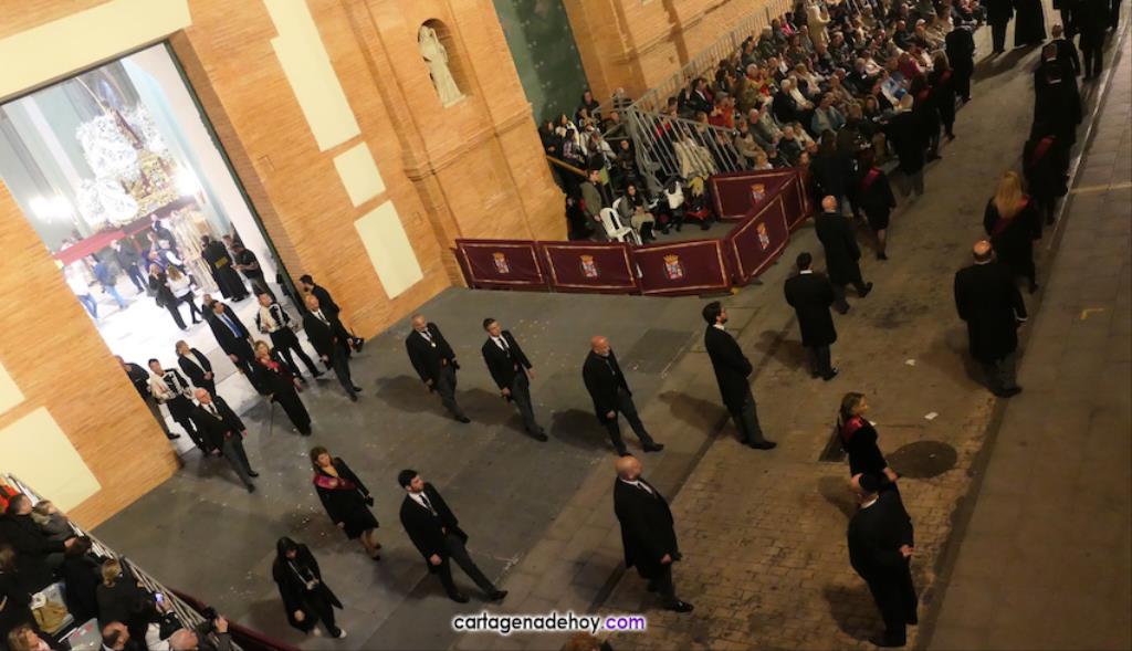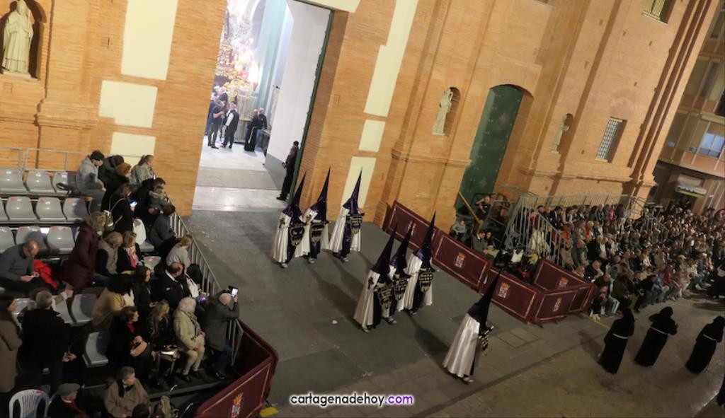 Los últimos momentos de Jesús en el entonces monte Gólgota, pero en clave marraja. Es decir, dolor con orgullo morado por el derroche de sentimiento, arte y orden, entre otros aspectos, que luce por las calles, pues la belleza de cada paso no desluce dentro de la sobriedad de la pena. En esta ocasión, mostramos a los lectores la salida del cortejo desde el balcón de La Económica con escenas también del interior de Santa María, donde el equipo de iglesia lleva un trabajo encomiable y organizado para que todo esté perfecto cuando cada tercio cruce el marco de la iglesia de Santa María.