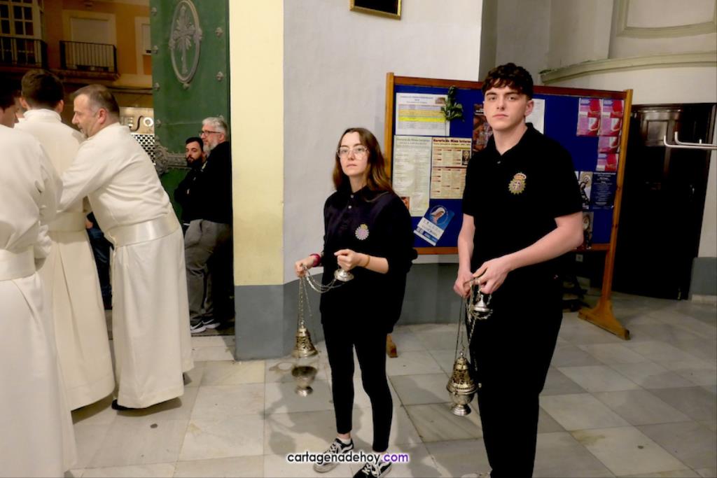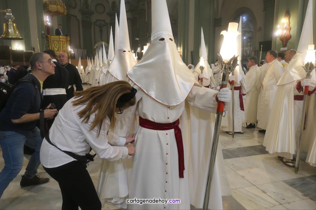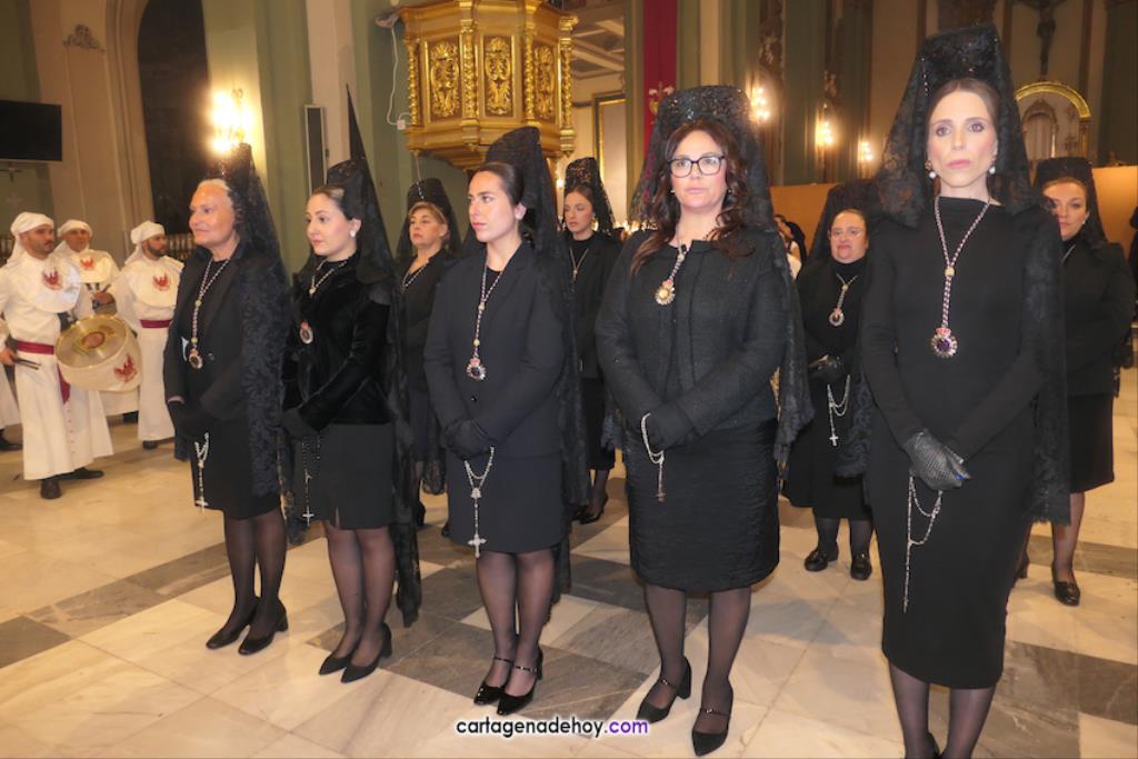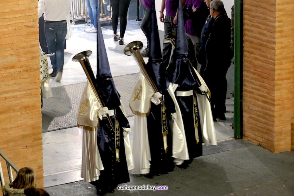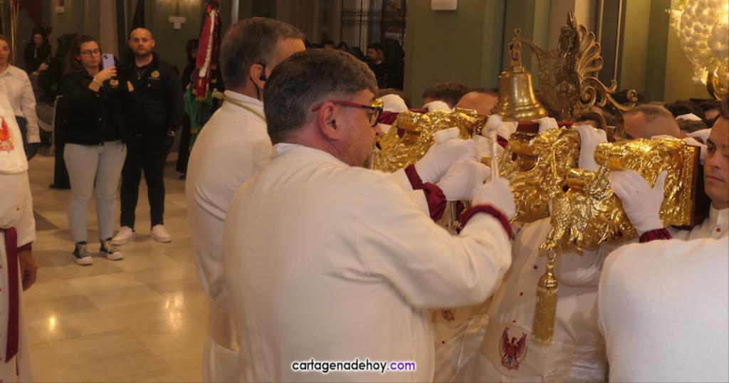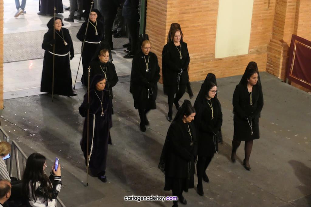 Los últimos momentos de Jesús en el entonces monte Gólgota, pero en clave marraja. Es decir, dolor con orgullo morado por el derroche de sentimiento, arte y orden, entre otros aspectos, que luce por las calles, pues la belleza de cada paso no desluce dentro de la sobriedad de la pena. En esta ocasión, mostramos a los lectores la salida del cortejo desde el balcón de La Económica con escenas también del interior de Santa María, donde el equipo de iglesia lleva un trabajo encomiable y organizado para que todo esté perfecto cuando cada tercio cruce el marco de la iglesia de Santa María.