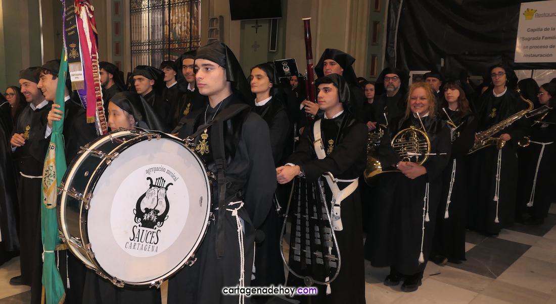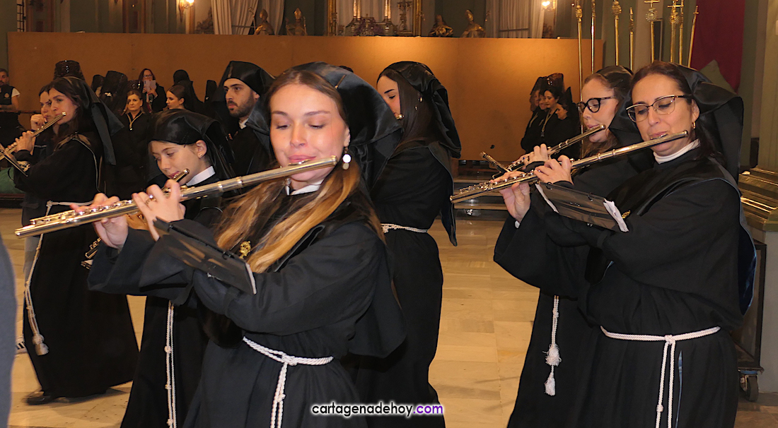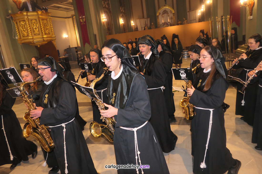 La agrupación musical cartagenera participa en siete de las diez jornadas de la Semana Santa de Cartagena, con doblete el Domingo de Resurrección con cien músicos repartidos en dos agrupaciones. A la conclusión, ya es tradicional, la banda se dirige a ritmo del animoso 'Amparito Roca' (tema casi centenario, pues fue compuesto por Jaime Texidor Dalmau en 1925) hacia la plaza de Los Juncos, donde tiene lugar una comida de hermandad.