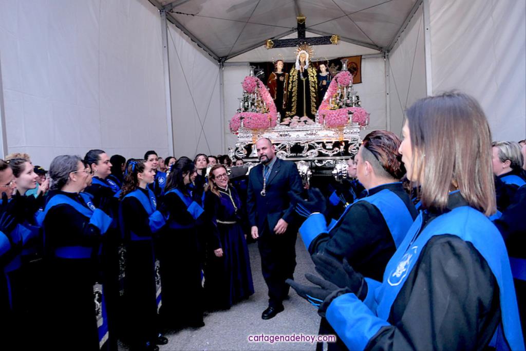 El epílogo es para la Virgen de la Soledad sobre la rampa de Santa María, con canto de la Salve e interpretación del himno nacional, en la última recogida marraja... por este año.