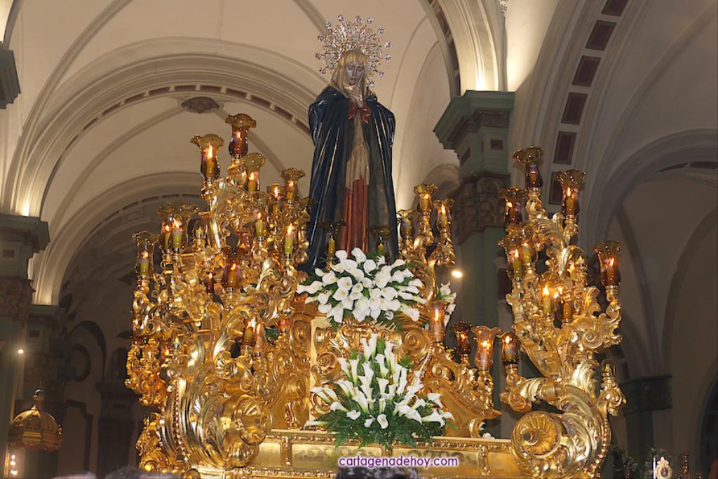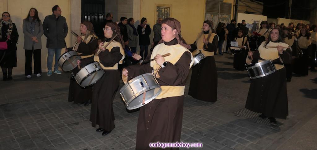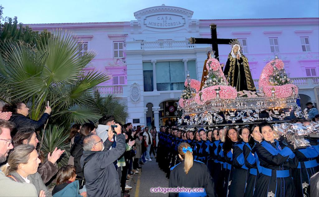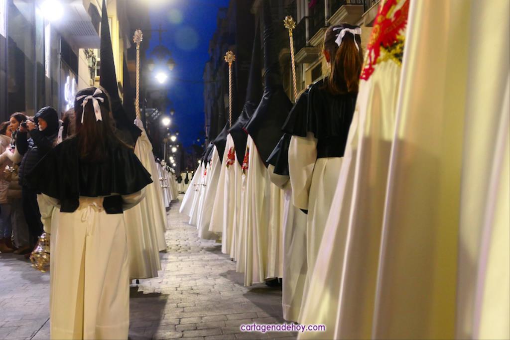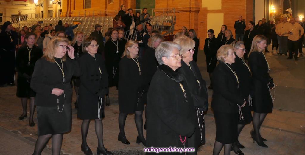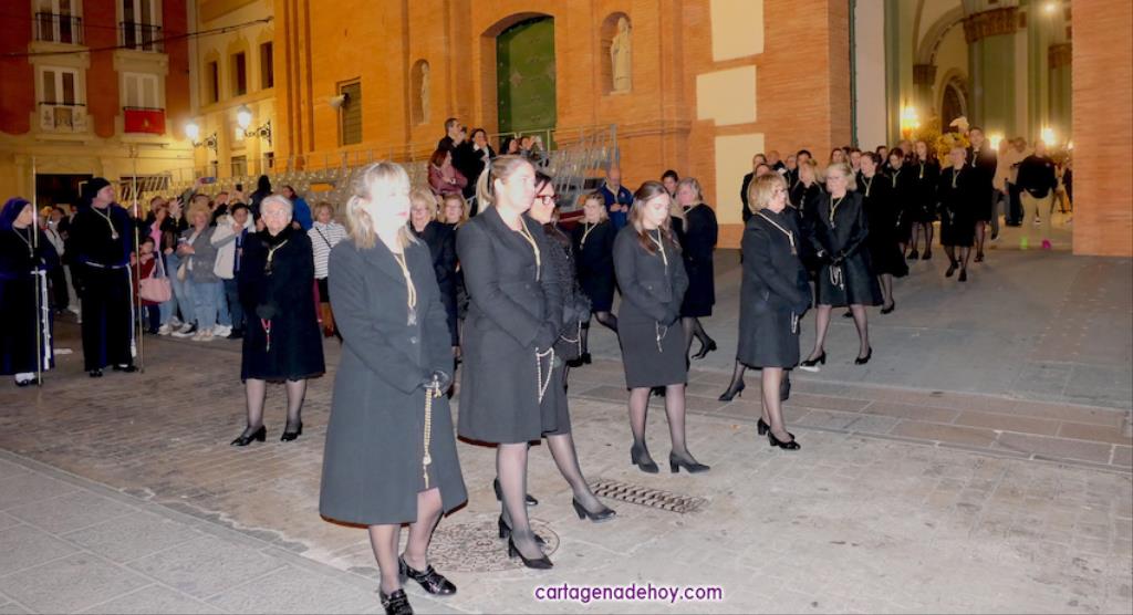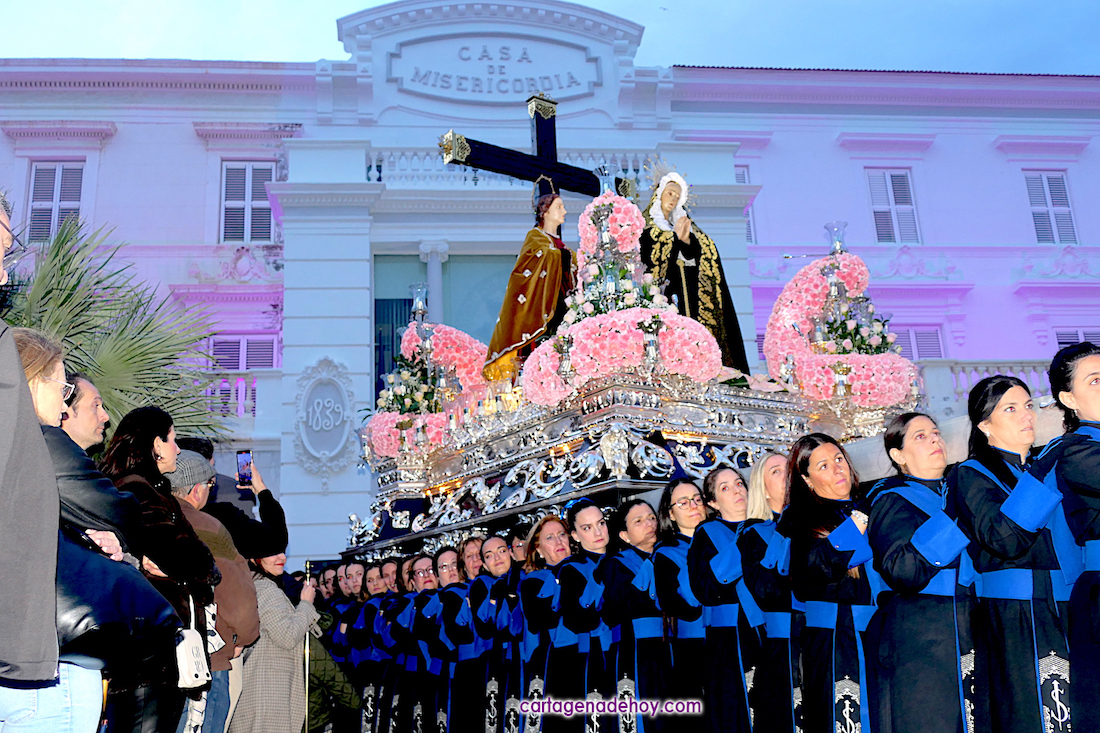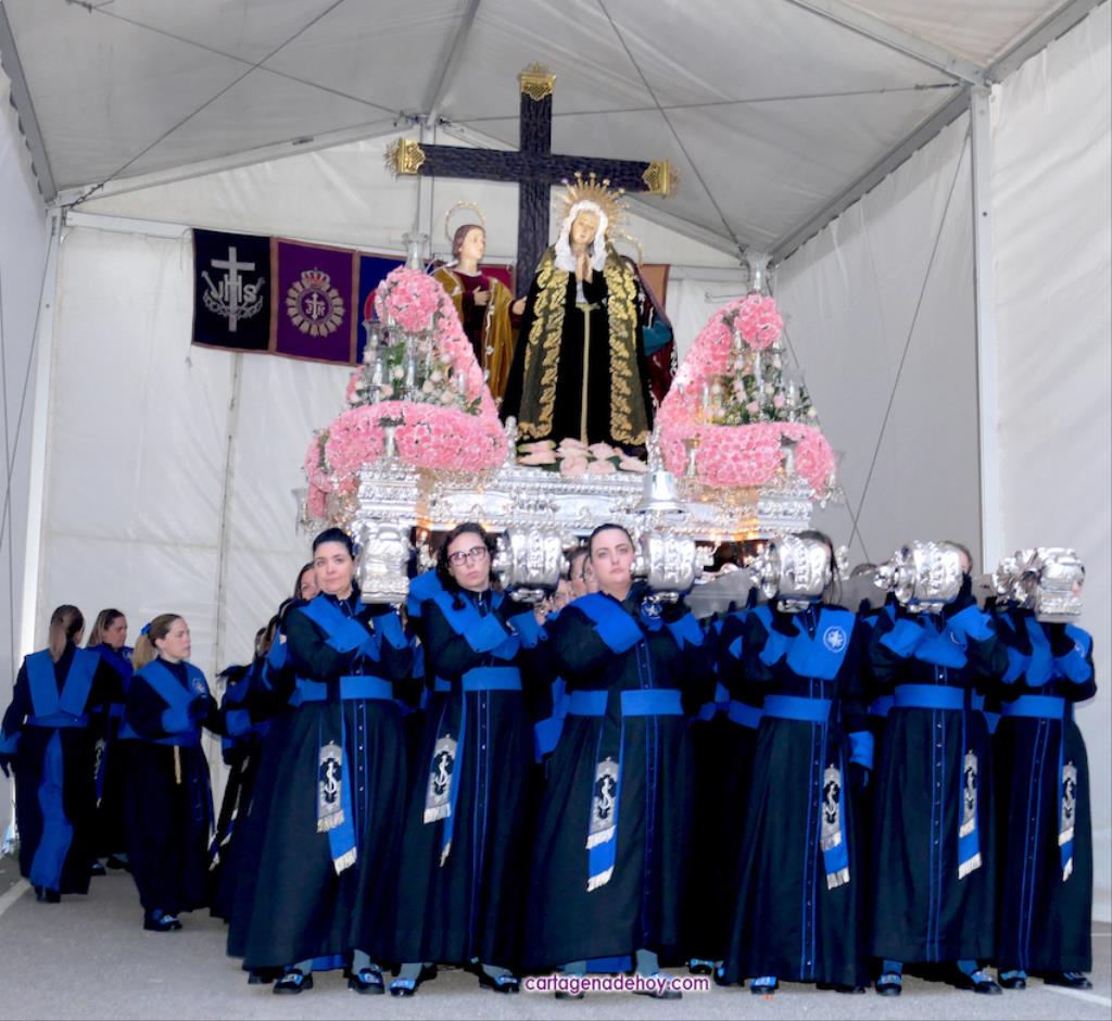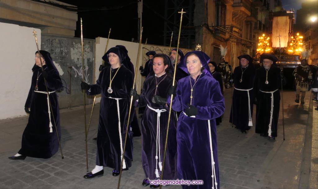 La Cofradía del Nazareno estrenó este desfile en 1956 para representar la pena y el luto por la muerte de Jesucristo, pero con la esperanza de la resurrección. Es el cortejo menos sonado de la hermandad, desde no escatiman cuidados, como muestra las recientes restauraciones de la Virgen de la Soledad de los Pobres (de talla compleeta) y del 'Santo Amor de San Juan', además de que este año la Virgen de las Santas Mujeres cuenta con nuevas manos, recuperando la posición en actitud de rezo de las mismas, como primitivamente iba. También luce nuevos pies tallados por Pablo Espinosa Gómez. Otras novedades han sido la botonadura de marfil del tercio de la Vera Cruz y los recuperados fajines negros con flecos rojos sanjuanistas.