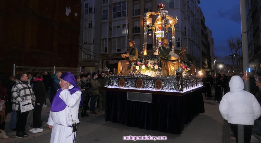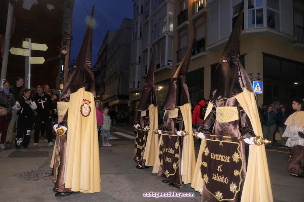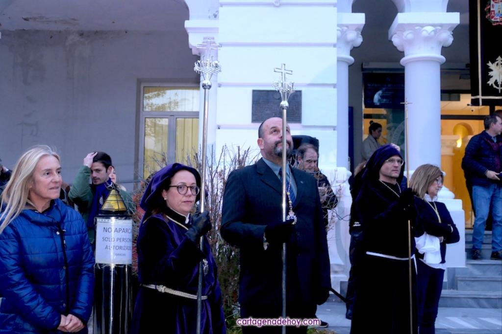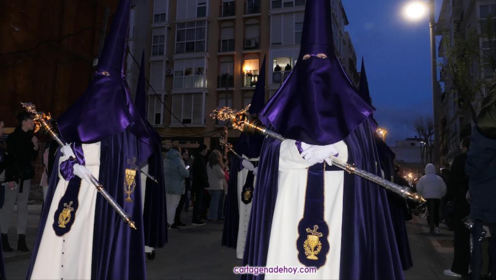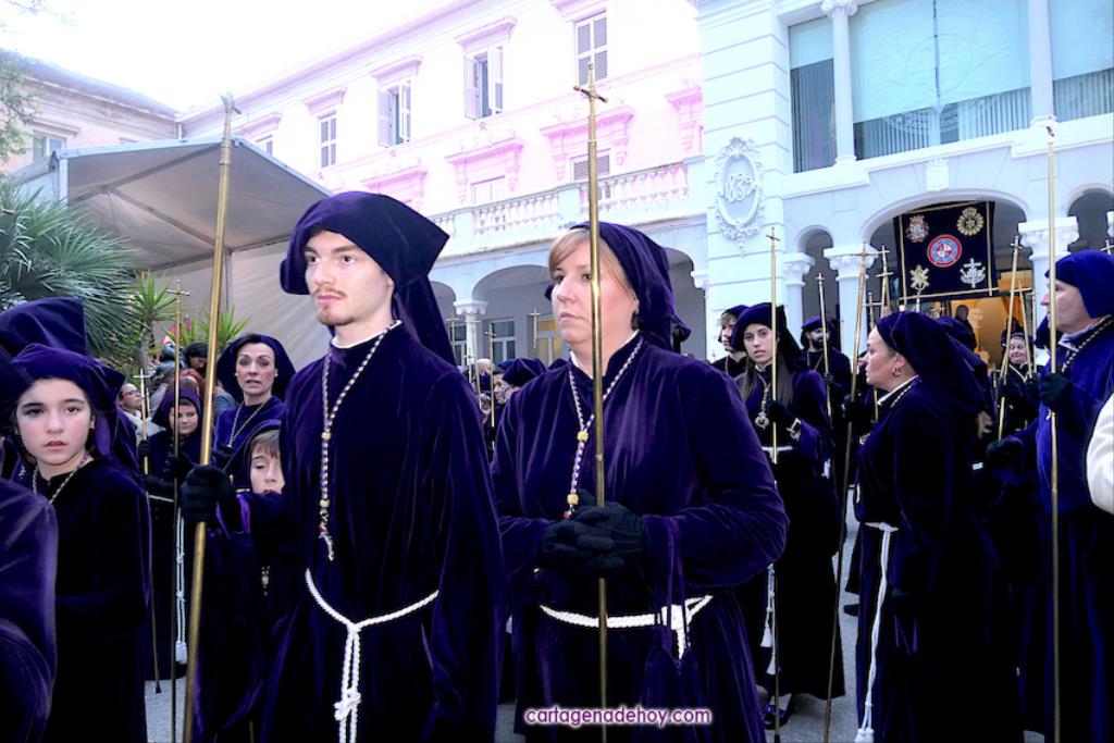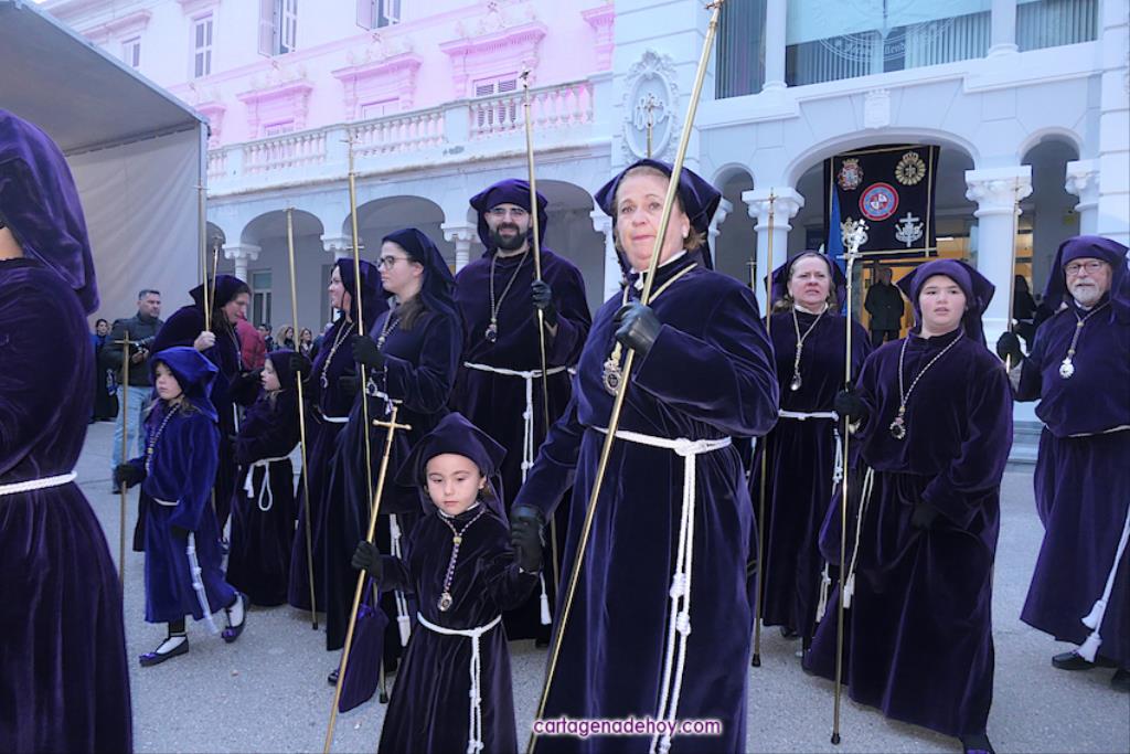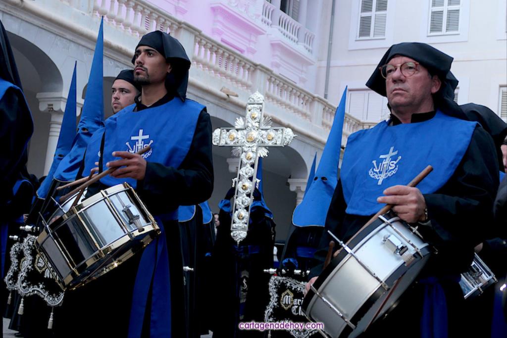 La tarde de este sábado no era precisamente 'de gloria' en el capítulo climático. Es de esos días en los que no apetece estar en la calle por lo desapacible y molesto que son el viento y el frío. Pocas cosas son capaces de alterar la búsqueda del confort. Una es el fútbol de élite, y de ahí que sea 'el deporte rey'. La otra, en Cartagena, es su Semana Santa, y de ahí que sea 'la reina de las fiestas'. Bien es cierto que no ha acudido el público de las grandes ocasiones, pero ha sido mucho el que ha presenciado el paso de la 'Procesión de la Vera Cruz', con la que se han despedido los marrajos.