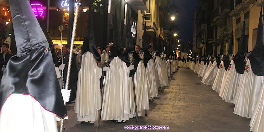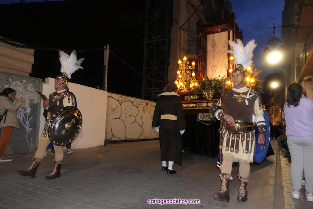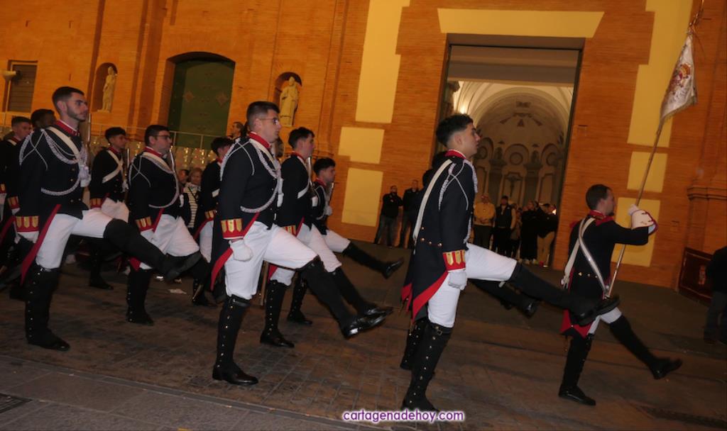 A continuación, la Sábana Santa (réplica de la original que está en Turín), el Santo Amor de San Juan con el (atractivo) trono más vanguardista de la Semana Santa de Cartagena, la cruz vacía (en su cruceta figura una piedra del monte del Calvario), la Soledad de los Pobres y el piquete de granaderos. A esa relación hay que sumar las remesas de nazarenos intercaladas en diversos puntos de la procesión.