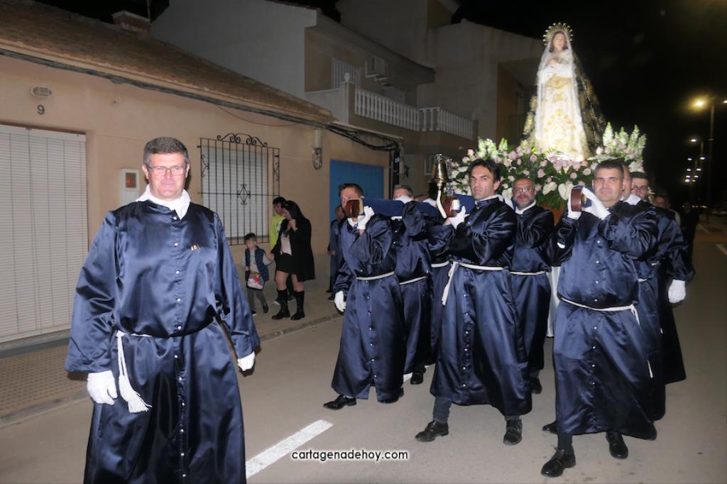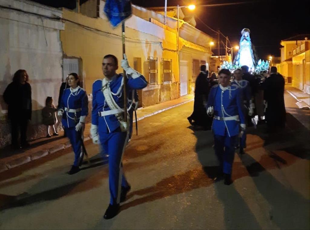 El hermano mayor de la hermandad, José Fernández, fue en la procesión acompañado por el concejal Pablo Braqueháis y el presidente de la Junta Vecinal Municipal de La Puebla-La Aparecida, Juan Manuel Ayaso.