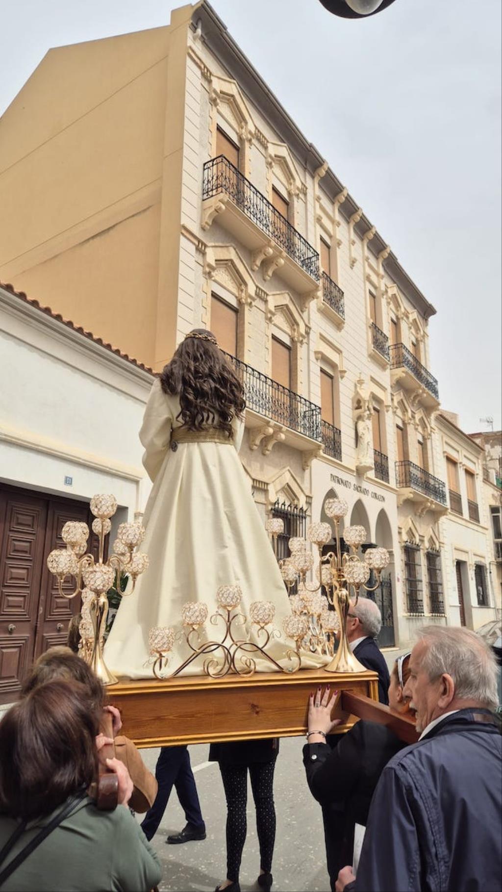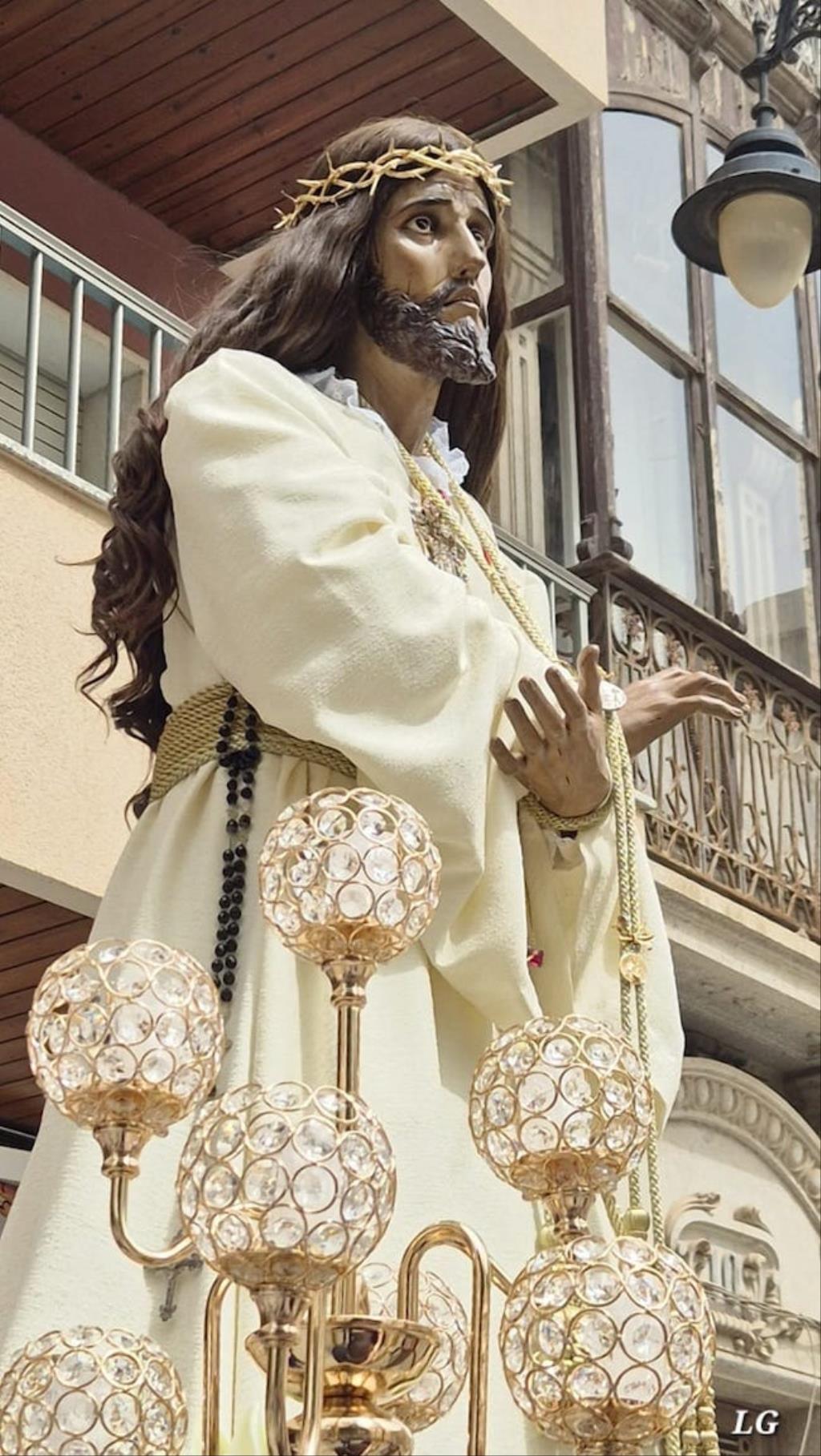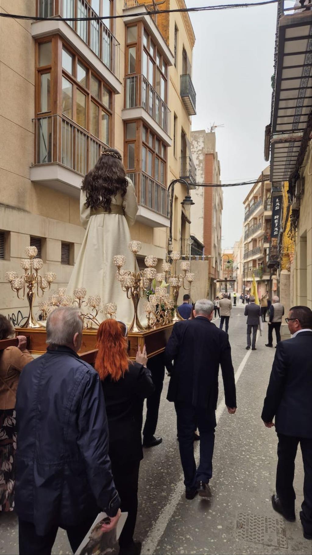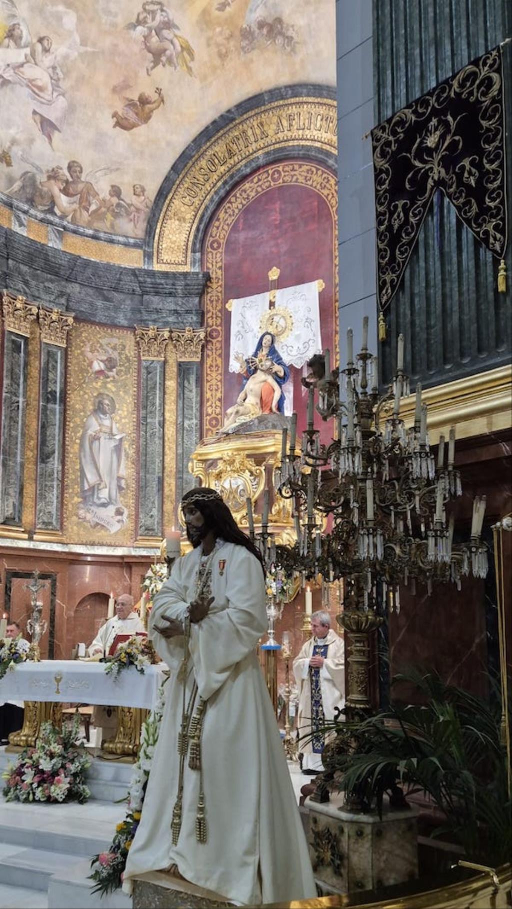 Cristo de la Divina Misericordia salió en la matinal del domingo de su capilla de la plaza de la Merced de Cartagena ('Plaza del Lago') con túnica blanca y a hombros para recorrer, en procesión, el trayecto hacia al Real Basílica Menor de la Virgen de la Caridad, donde presidió la celebración de la festividad de la 'Divina misericordia', la cual proclamó San Juan Pablo II, en su etapa como papa, en el año 2000.