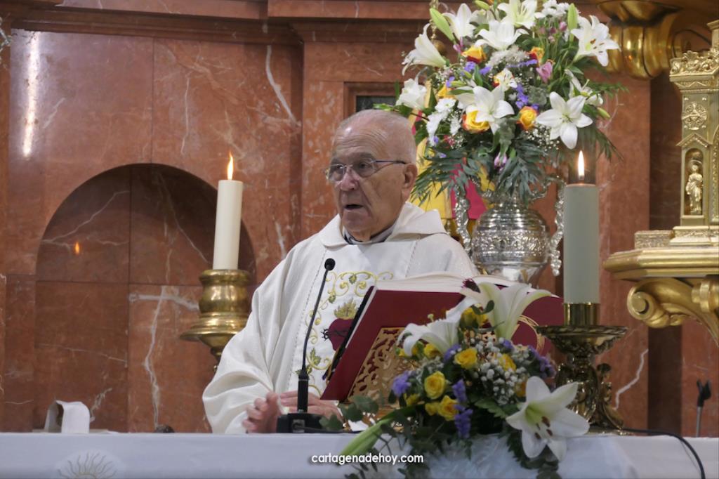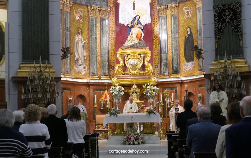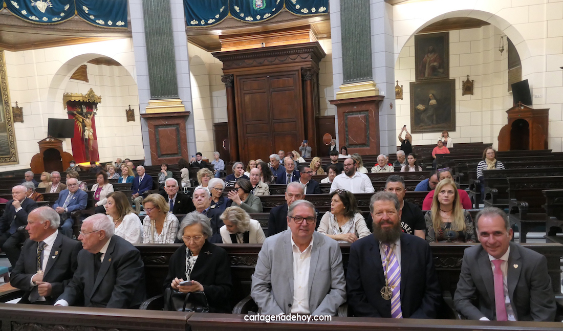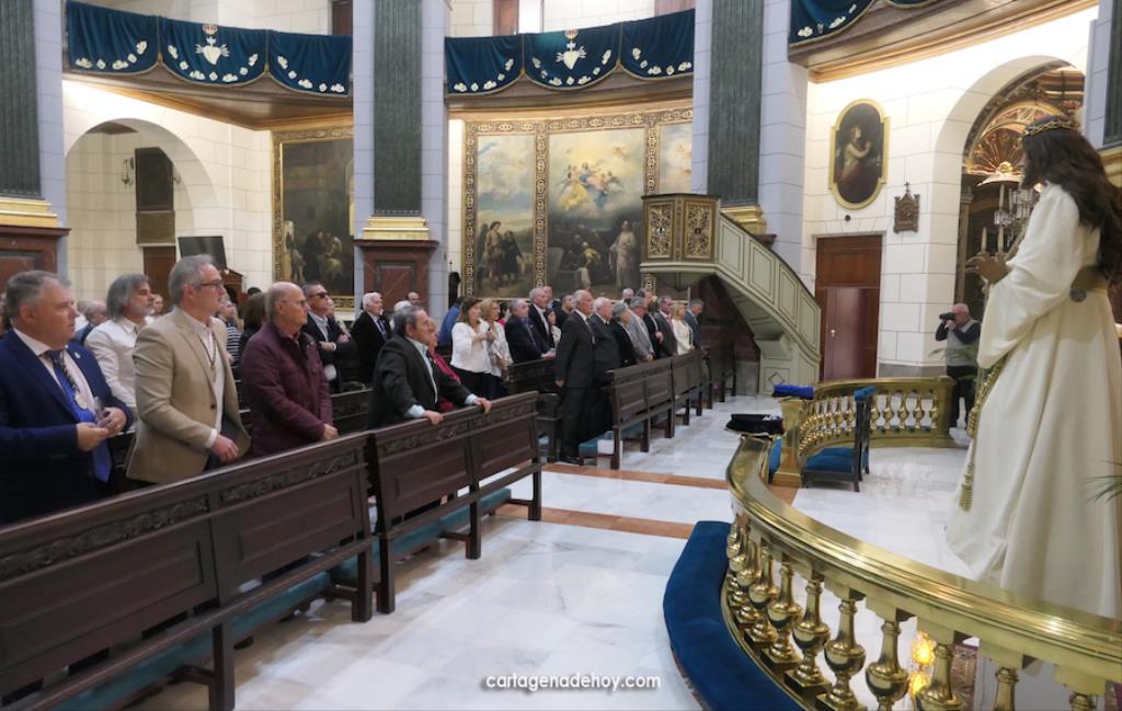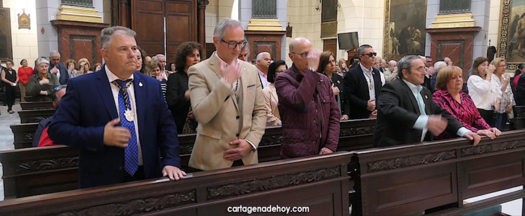 La eucaristía fue oficiada por el rector de La Caridad, Francisco Montesinos, y el capellán de la asociación canónica, Pedro García León, encontrándose entre los asistentes, entre otros, los hermanos mayores del Hospital de la Virgen de la Caridad, de la Hermandad de Romeros de San Ginés y de la Cofradía del Cristo de los Mineros de La Unión, respectivamente, José Vera, Andrés García y José Cortado; el presidente de la asociación 'Cartagena por la Caridad', Matías Barco; del pintor Pedro Pérez Casanova, etc.