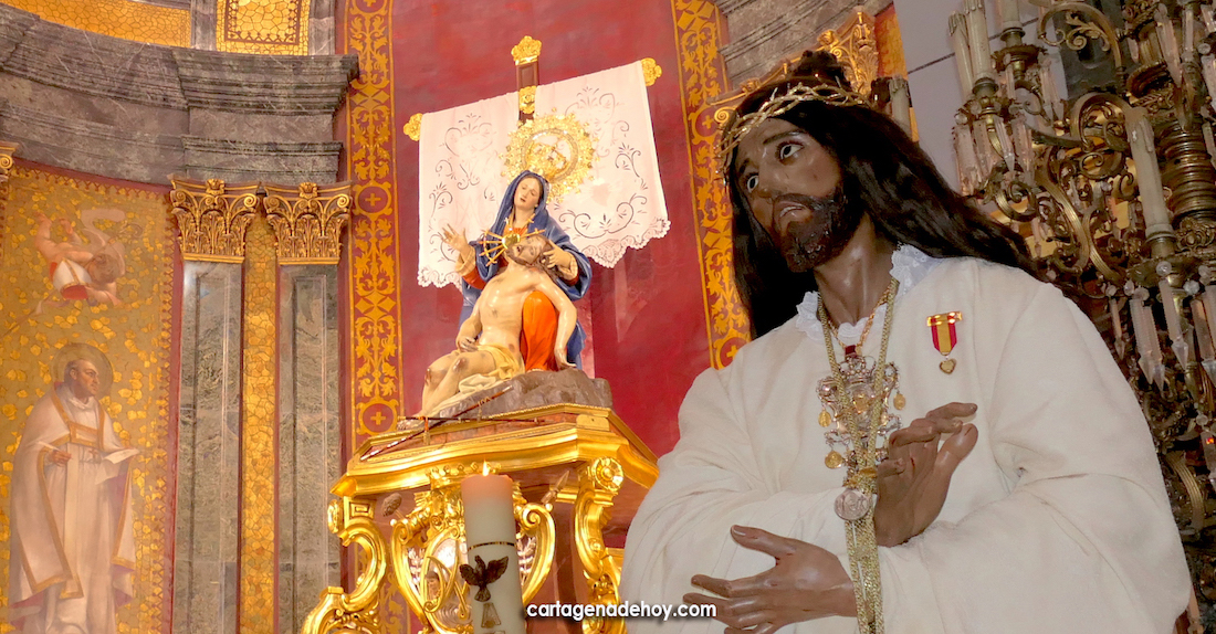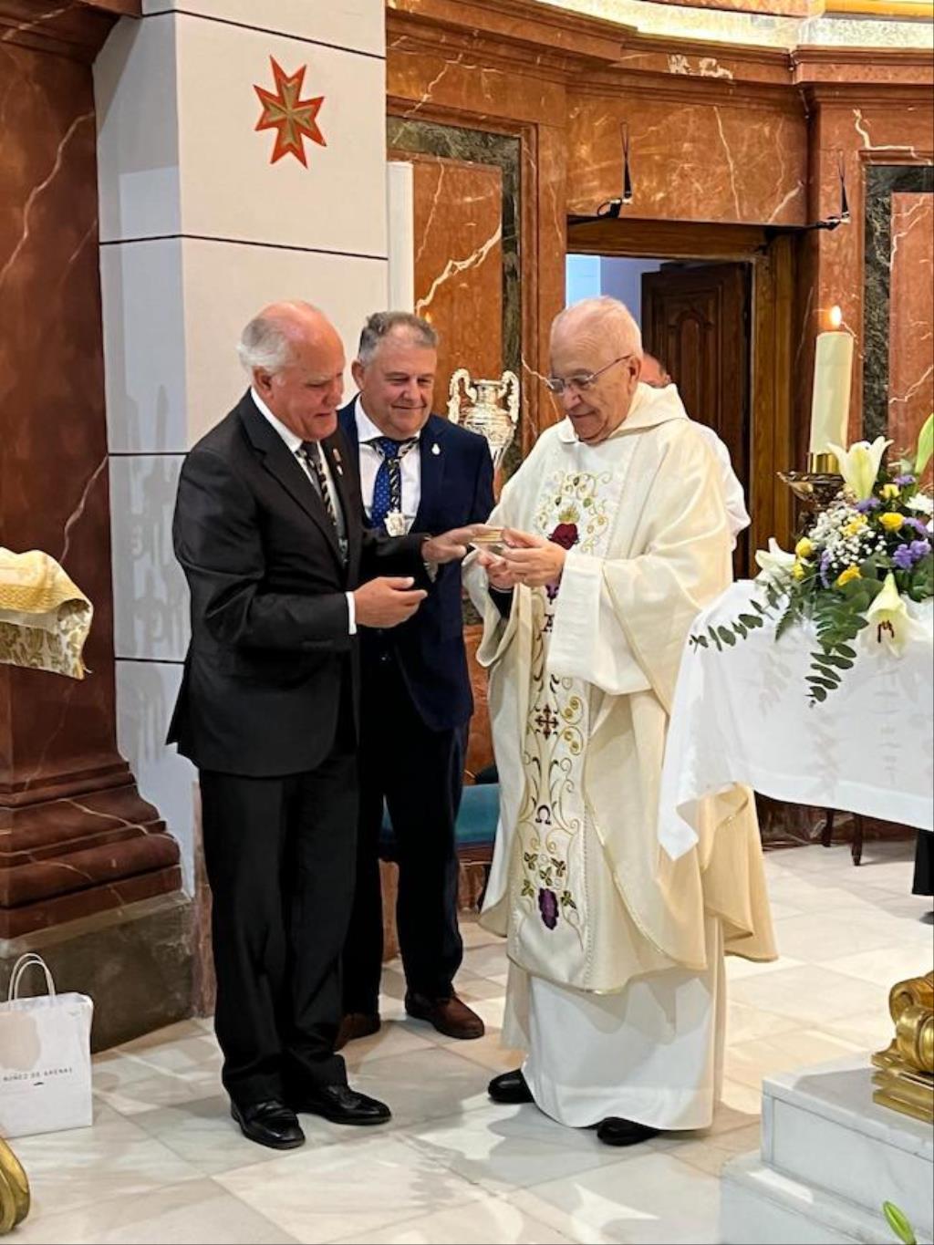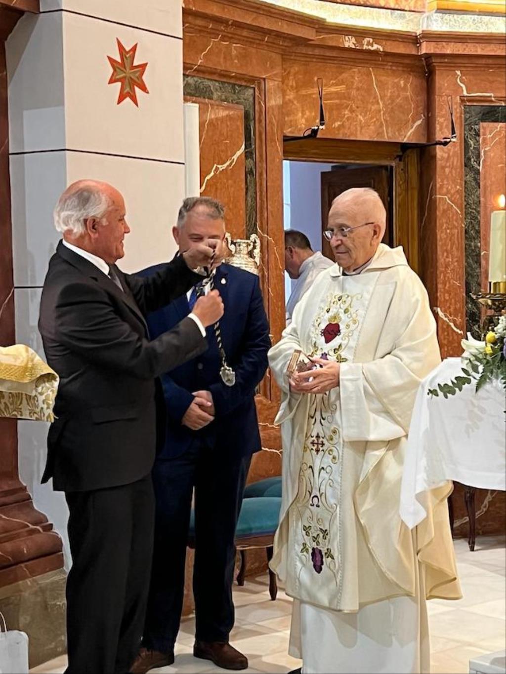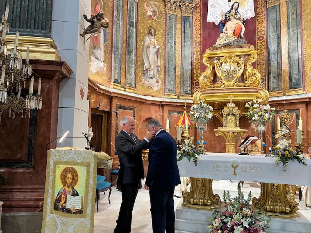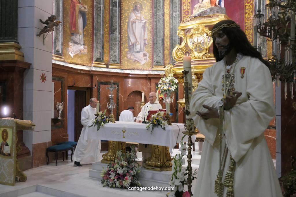 Antes de concluir la misa, el presidente de la asociación canónica del único Cristo obra de Salzillo que hay en Cartagena, José Felipe Rubio, hizo público el acuerdo unánime de la junta directiva de nombrar como 'Capellán perpetuo del Santísimo Cristo de la Divina Misericordia' a Francisco Montesinos, quien recibió el nombramiento con ilusión y emoción.