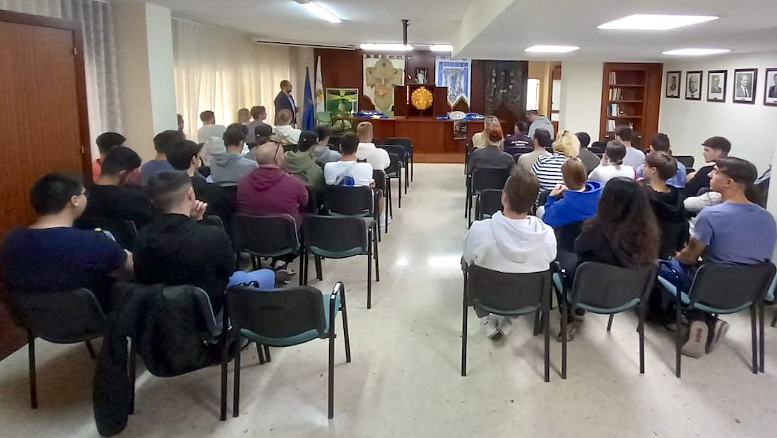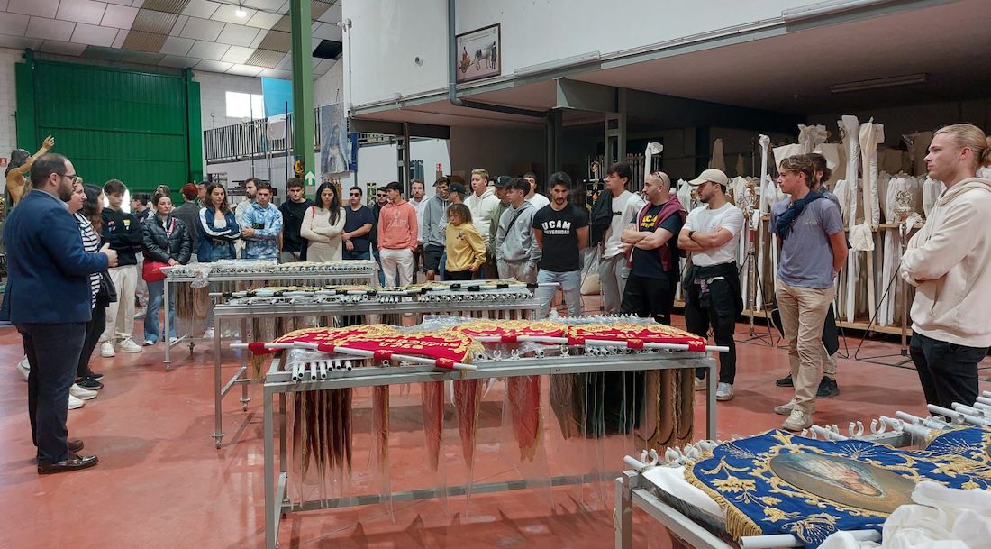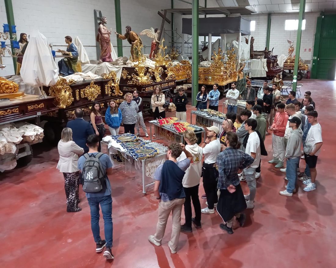Los universitarios han acudido acompañados de docentes, así como de la Hermana Mayor del Resucitado, Marién García Boj, y el Primer Mayordomo, Pedro Giménez. Tras la visita al almacén se han desplazado, a la sede de la hermandad donde, ya sentados, han recibido una explicación de la historia de nuestra Cofradía, el pasado y el presente, así como la proyección de futuro de la misma.