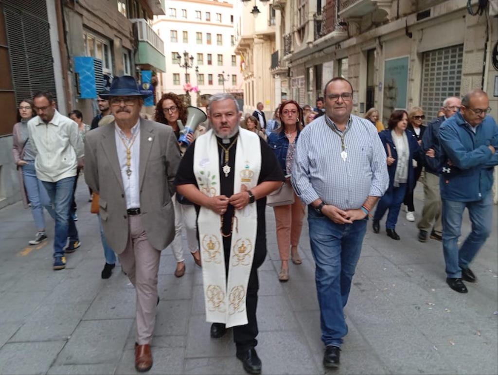 El Rosario ha comenzado a las siete de la mañana desde la Parroquia Castrense de Santo Domingo, donde se han congregado un centenar de devotos que han portado la imagen esculpida en 1979 por Antonio García Mengual y que recibe culto en una de las capillas laterales de dicho templo.