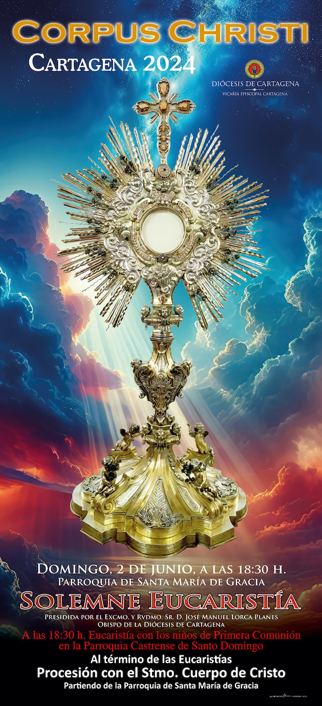 La celebración en torno al 'cuerpo de Cristo' tendrá lugar el 2 de junio, domingo, a las 18.30 horas en la iglesia de Santa María de Gracia de Cartagena y su conclusión comenzará la procesión por el casco histórico junto a los niños que han hecho la comunión en diferentes parroquias, cofradías y diversos colectivos católicos.