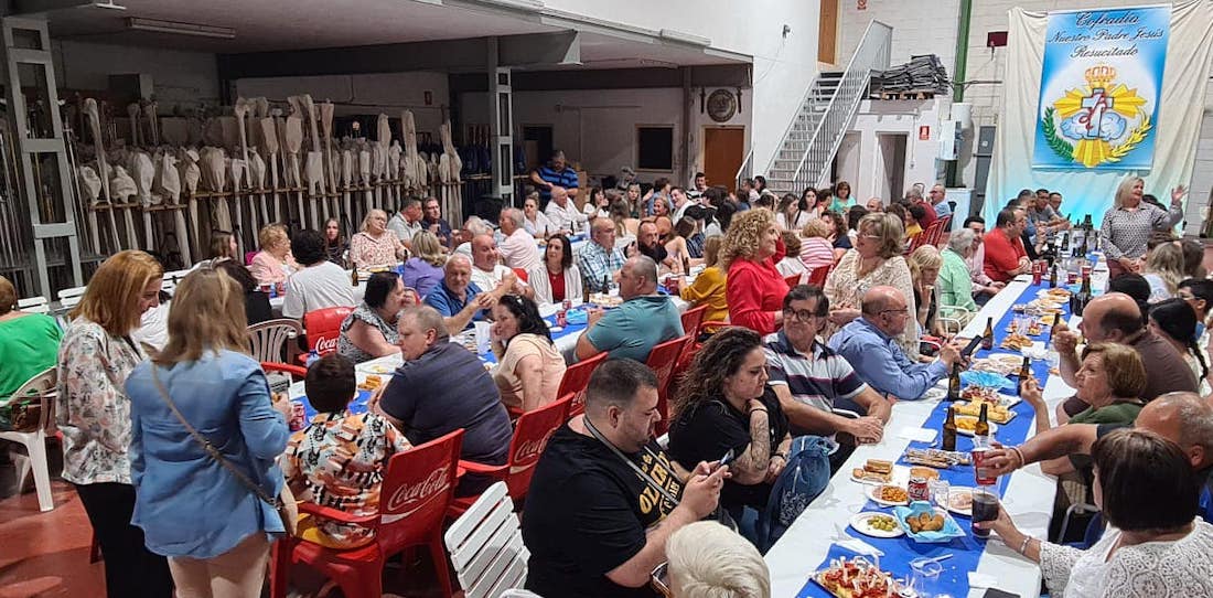 Más de doscientas cincuenta personas participaron en un gran encuentro de hermandad de las agrupaciones de la Cofradía de Jesús Resucitado que tuvo como marco el almacén de tronos.