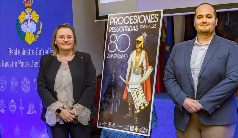 La celebración de las ocho décadas desde que comenzaron los desfiles pasionarios de Jesús Resucitado como cofradía tiene una imagen inspirada en los carteles de aquella época, con los romanos del casco del dragón como protagonistas. El autor es procesionista y desde 2022 es la voz que desde el púlpito ordena y da la salida de la procesión del Domingo de Resurrección.