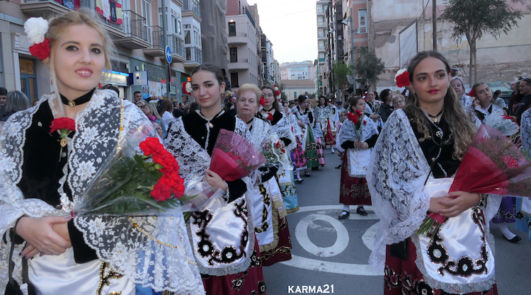 El desfile previo a la ofrenda se concentrará en la Plaza de Ayuntamiento a las 16:30 horas, saliendo a las 17:00 horas para recorrer las calles Mayor, Plaza de San Sebastián, Puerta de Murcia, Santa Florentina, Parque, Plaza Puertas de la Serreta, Serreta e Iglesia de la Caridad.