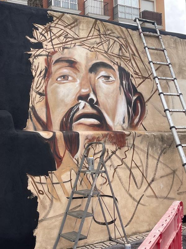 El mural se pretende que esté terminado para antes de la medianoche del Jueves Santo.