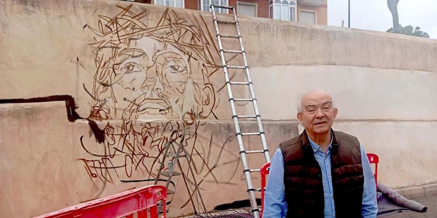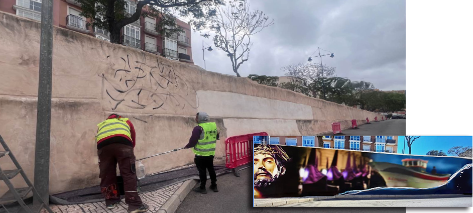 Han comenzado los trabajos para la elaboración de un gran mural en la subida hacia El Pinacho en Santa Lucía, lugar por donde pasa la imagen de 'Jesús con el madero' en la madrugada del Encuentro. Su realización ha sido aprobada por la nueva junta vecinal municipal de 'La Isla' que preside Manuel Torres Paisal, a quien se observa en la foto adjunta.