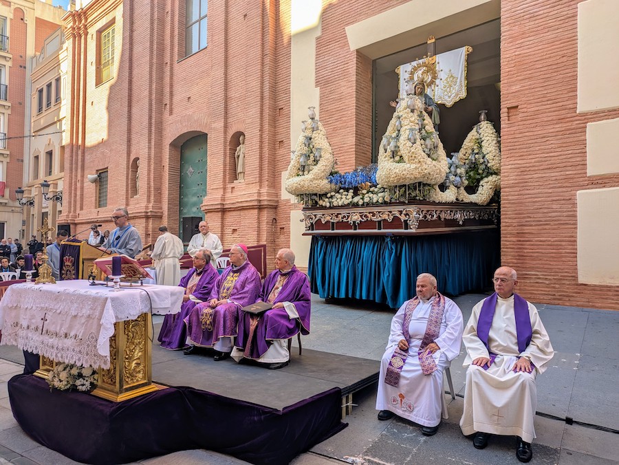 La entrega de la “Sexta Vara” tuvo lugar al finalizar una solemne misa extraordinaria, celebrada frente al trono de la Virgen de la Piedad, en el atrio de la Iglesia de Santa María. La eucaristía estuvo presidida por el Excmo. y Rvdmo. Sr. Obispo de Cartagena, D. José Manuel Lorca Planes, acompañado por el capellán marrajo, Rvdo. D. Fernando Gutiérrez Reche, junto al Vicario Episcopal de Cartagena, Ilmo. Sr. D. José Fernández Sánchez.