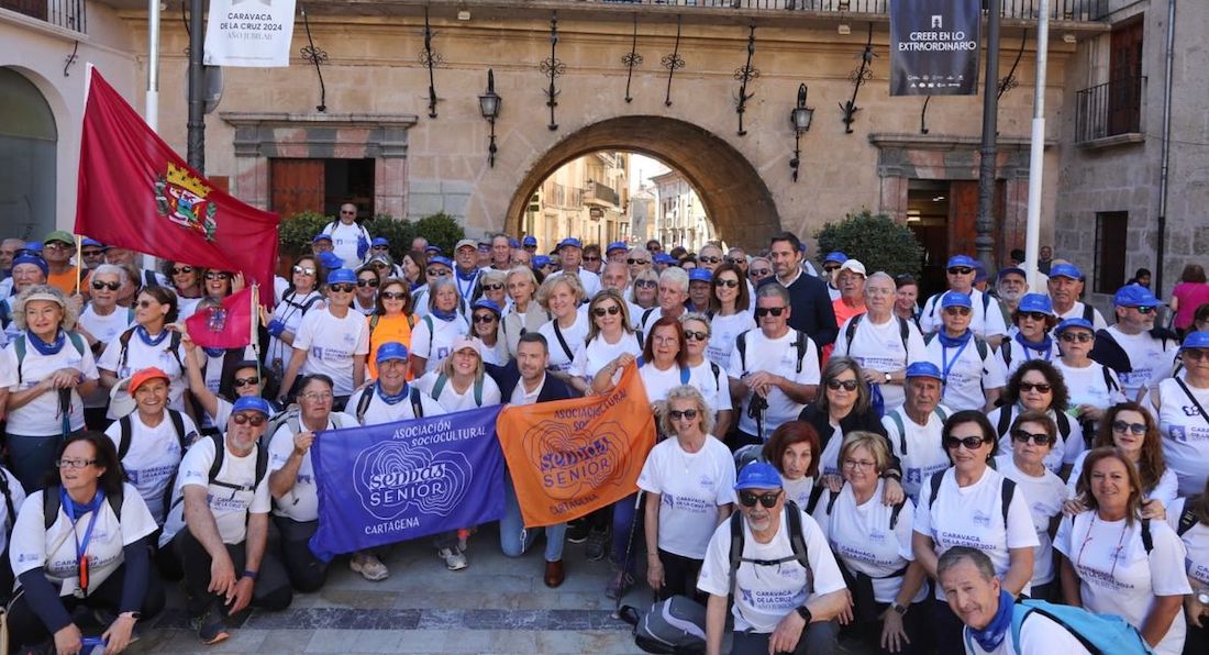 La asociación de personas mayores Senda Senior ha culminado hoy la peregrinación a Caravaca de la Cruz, con motivo del Año Jubilar. El casi centenar de mayores participantes, a los que se sumó una delegación de la Parroquia de Santo Domingo de Cartagena, estuvieron acompañados durante esta última etapa por la alcaldesa de Cartagena, Noelia Arroyo, además de la edil de Mayores, Paqui Martínez. La etapa se inició a las 9 de la mañana en Cehegín y sobre las 11 llegaron a Caravaca, donde les recibió el alcalde de la localidad, José Francisco García.