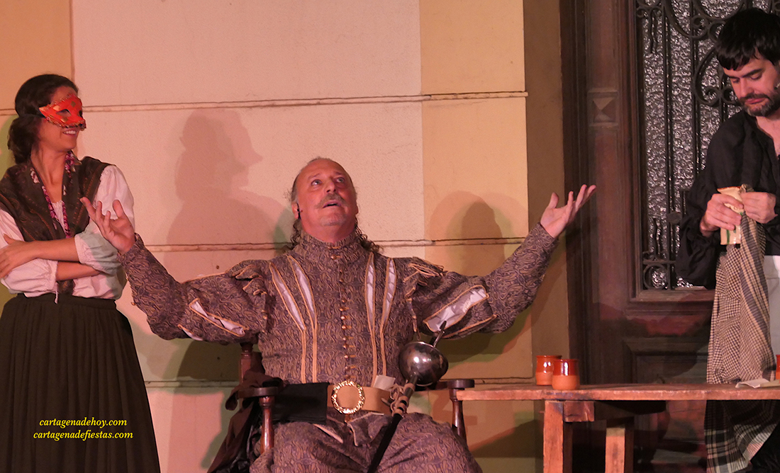 Hace un año se estrenó la versión de 80 minutos creada por 'Ditirambo' para relatar las andanzas de Don Juan Tenorio a pie de calle, en concreto, en el corazón de la ciudad de Cartagena con gran éxito y este año ha vuelto a responder a la altura esperada, con una magnífica puesta en escena de los actores sobre el escenario montado ante la histórica fachada de la Real Sociedad Económica de Amigos del País, frente a la iglesia de Santa María.