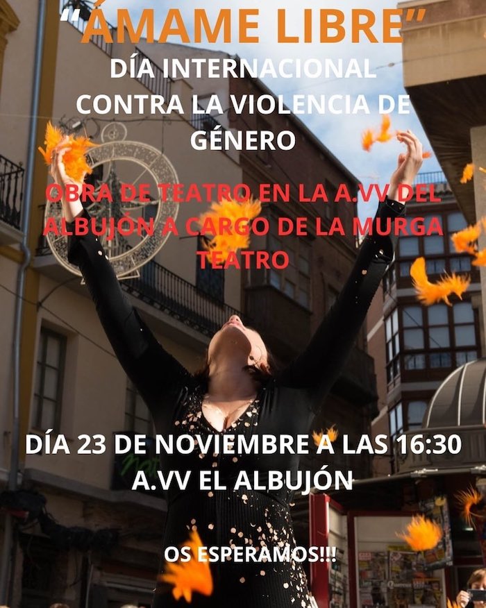 La función teatral organizada por La Murga Teatro efectuó una representación en el local social de la Asociación de Vecinos de Nueva Cartagena, como muestran las fotografías adjuntas, y este jueves se llevará a cabo en el centro albujonero (16.30 horas), estando ambas puestas en escena relacionadas con la celebración del '25N: Día internacional contra la violencia de género'. Entrada gratuita.