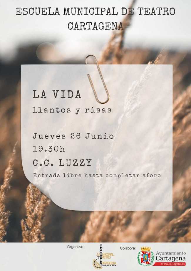'La vida: llantos y risas', a las 19:30 horas, en el Luzzy. La Escuela Municipal de Teatro celebra la clausura del curso 2024/2025 con su tradicional muestra escénica, en la que alumnos de los diferentes grupos de la escuela, de diferentes edades, representarán textos de reconocidos autores. En esta ocasión, el grupo adulto de turno de mañana, interpretará una obra creada por el director de la escuela, Alfredo Ávila. Entrada libre, hasta completar aforo.