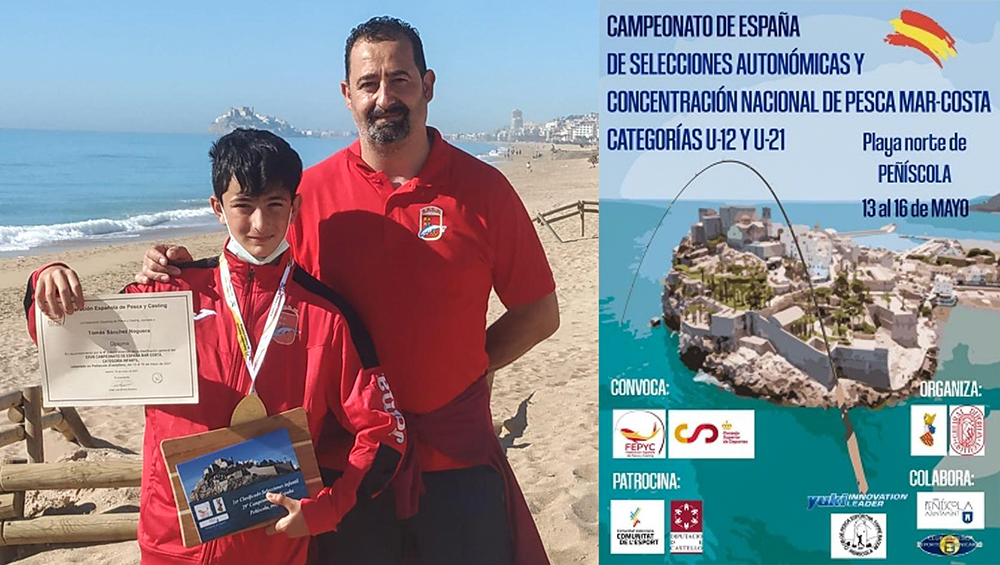 El joven de Perín se ha proclamado campeón de España por selecciones autonómicas con el equipo de la Federación Murciana de Pesca en el XXVIII Nacional celebrado en Peñíscola (Castellón). A nivel individual, consigue el segundo puesto en categoría infantil y su nombre entra en la lista para representar al equipo nacional en el campeonato del mundo que se celebrará en tierras galas en 2022.